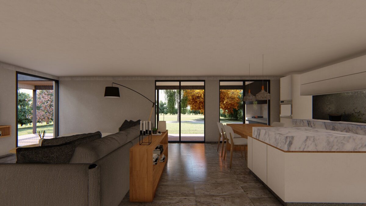 Las líneas de visión se convierten en un juego de perspectivas, donde el usuario se adentra en un viaje a través de las capas de la casa. Los llenos y vacíos creados por la retícula de vigas permiten que la luz natural cree juegos de claroscuro en muros y solados, como si fuera una pintura que da vida a la arquitectura.