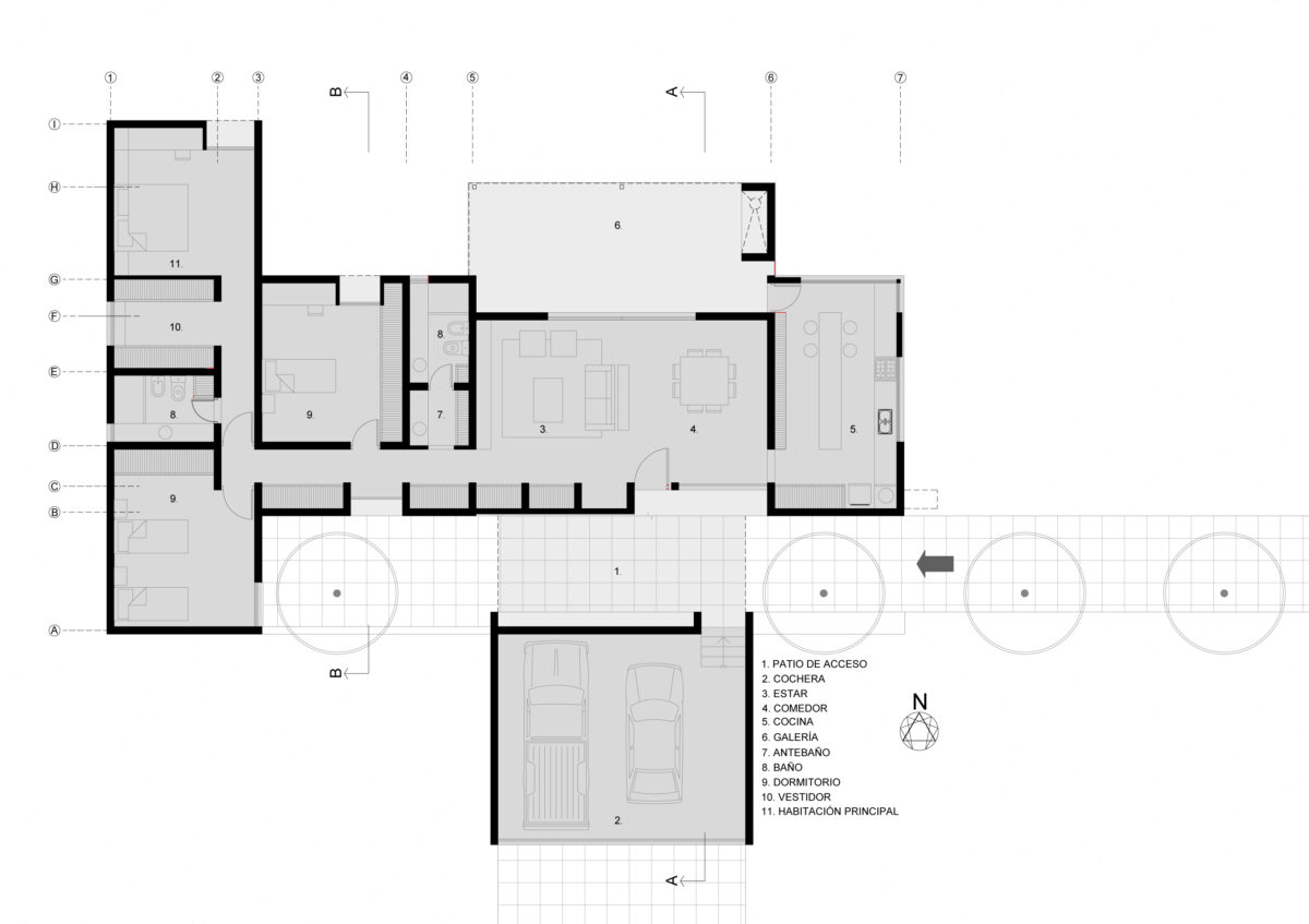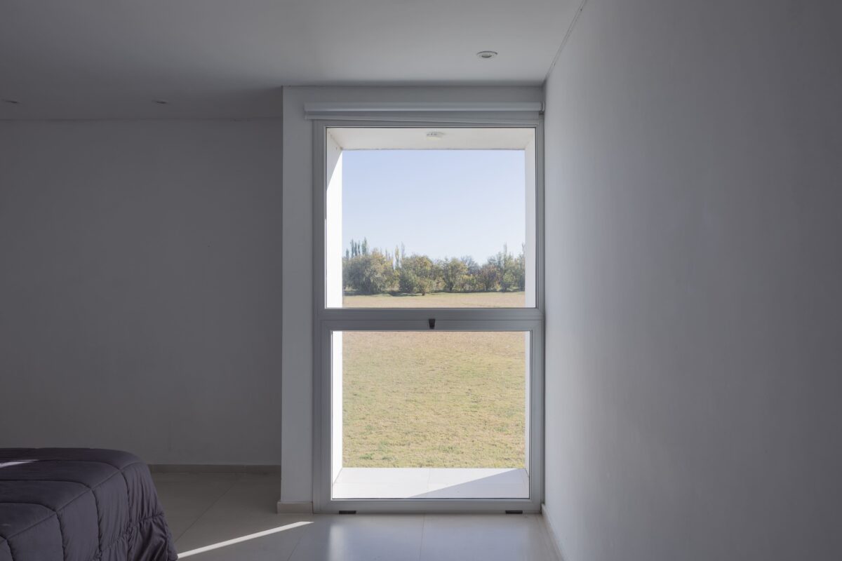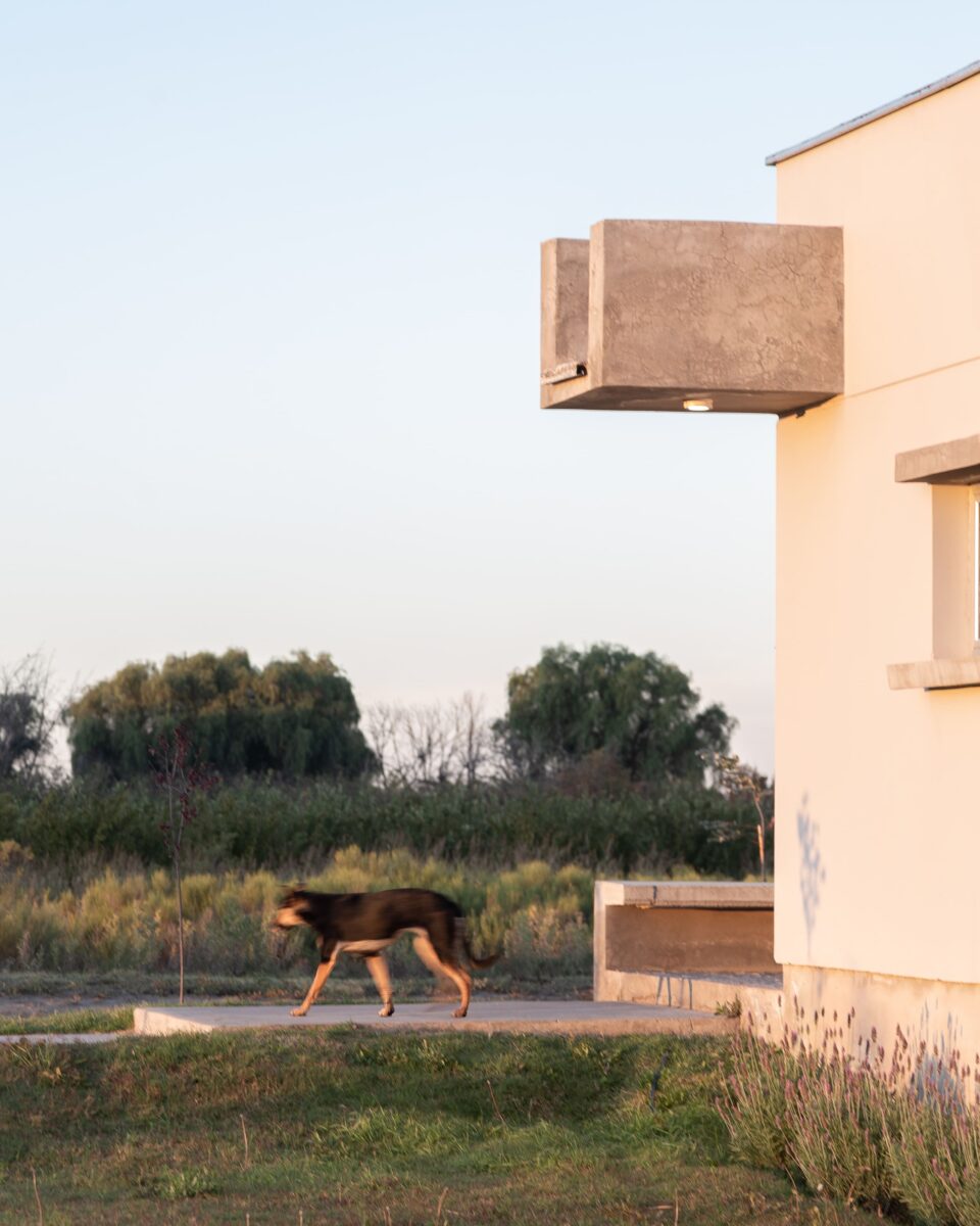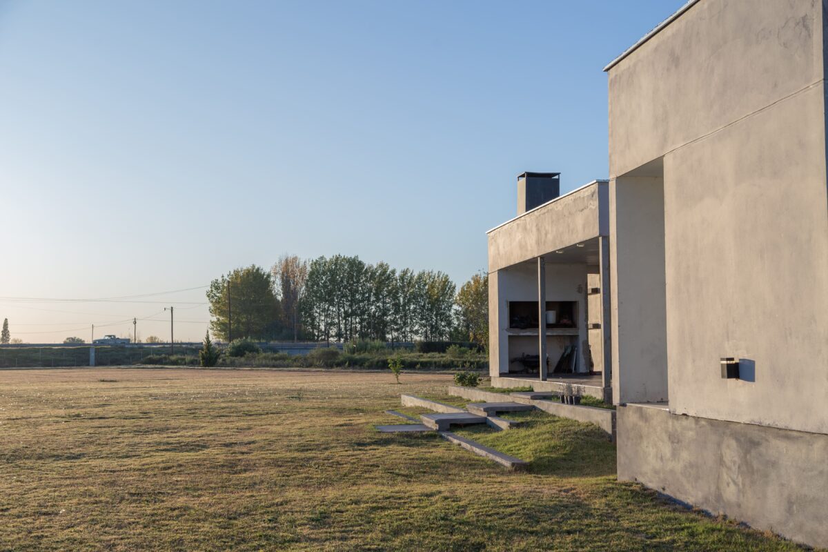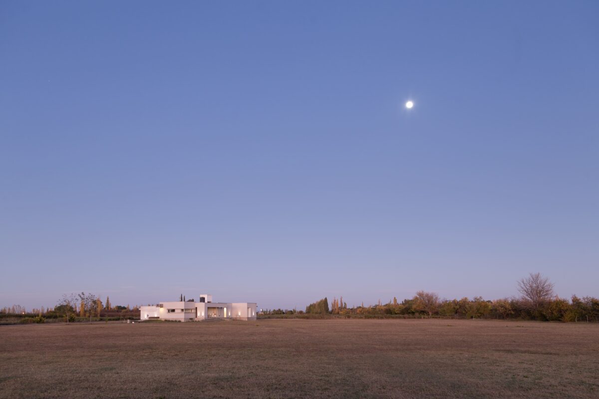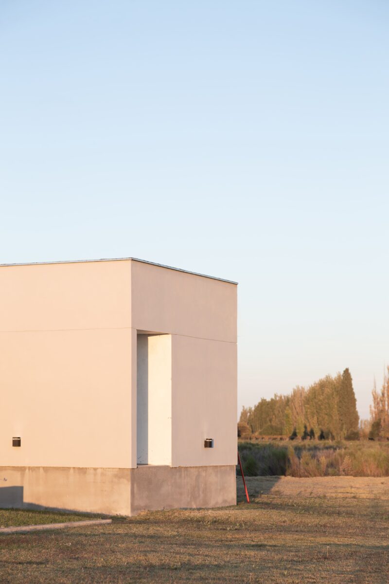 La obra se define como espacios en pleno contacto con la naturaleza. Ubicada en un finca de 7 ha, esta casa respeta los dogmas de las viejas casa de campo mendocinas. La cocina, orientada al este, recibe la primera luz de día, el estar comedor en el centro con una amplia galería al norte y el bloque de dormitorios al oeste para recibir la última luz del día.