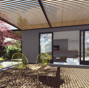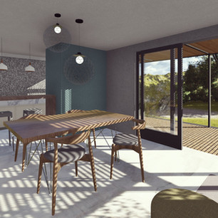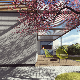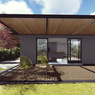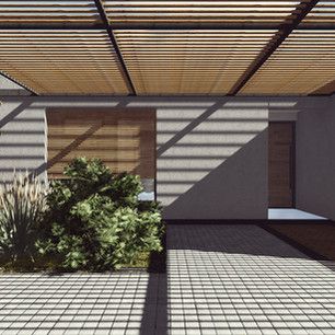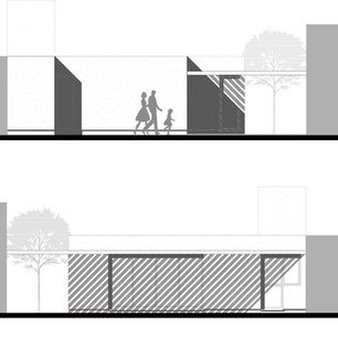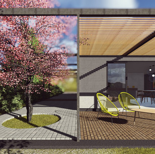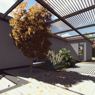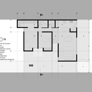 El proyecto desde su origen plantea un partido "poco frecuente" para una casa de barrio, el bloque de dormitorios se encuentra al frente de la propiedad, mientras que la zona diurna se esconde hacia el interior. La vivienda en su diseño busca el norte casi obsesivamente, por eso la disposición. Se apoya sobre uno de sus laterales dejando un retiro en el otro, el retiro es patio, es acceso, es cochera y galería. Un continuo de piso calado que acompaña el recorrido, un constante fluir en el andar que remata en un árbol, bisagra con la galería principal que se orienta al norte.