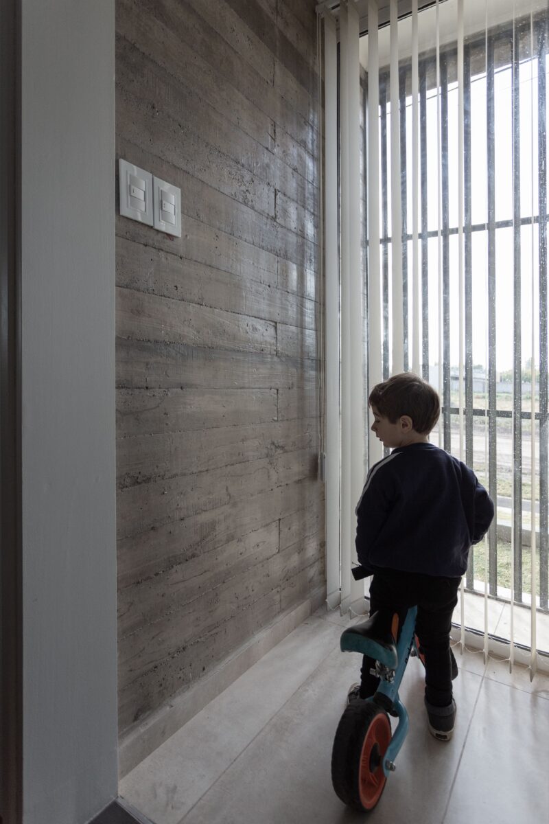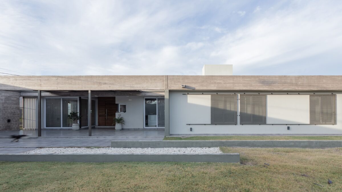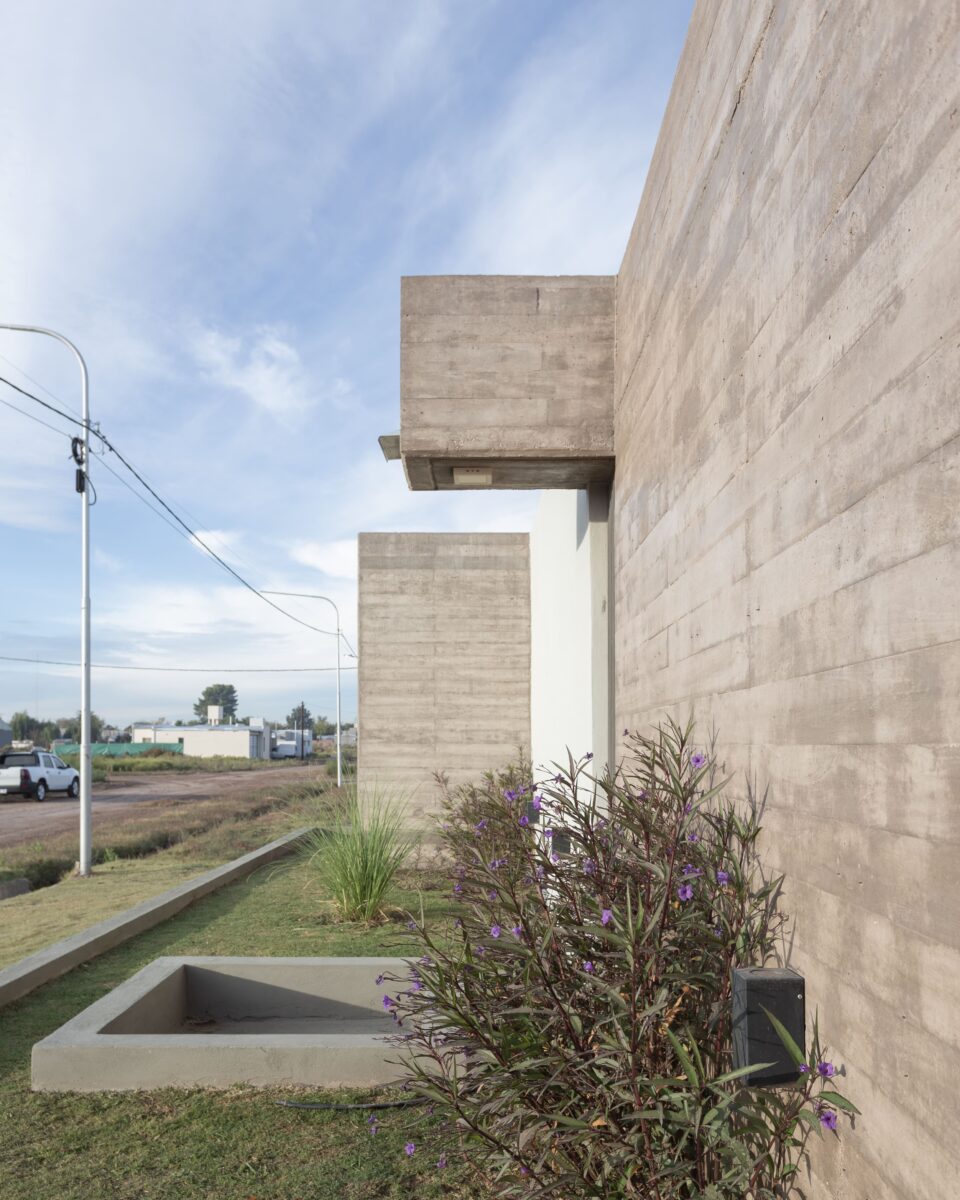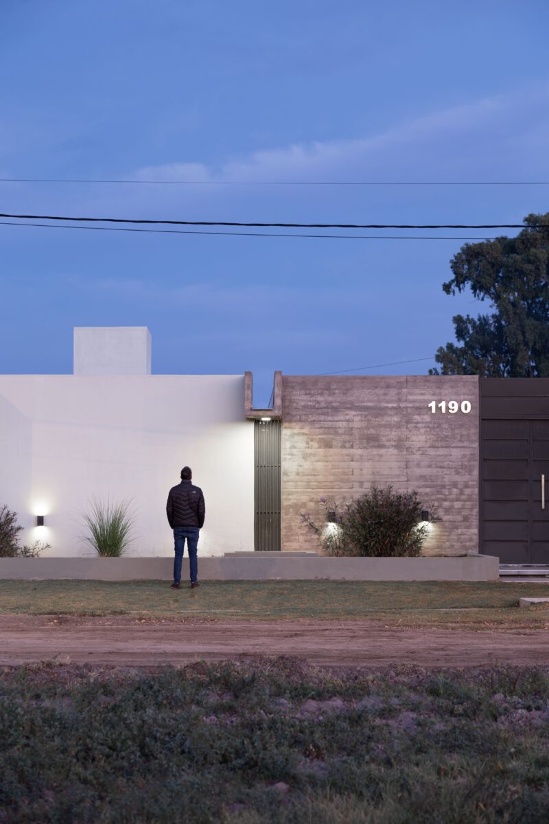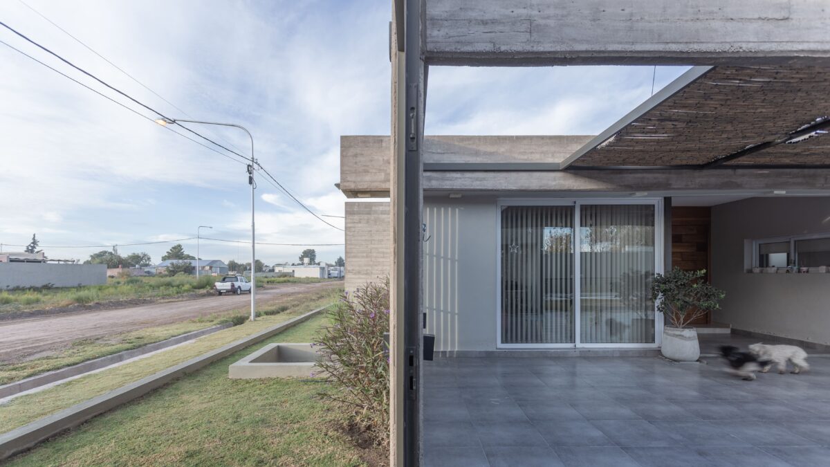 Del mismo modo la casa se divide este-oeste, ubicando en la primera orientación el espacio diurno en relación con la calle y al oeste la zona de habitaciones. A su vez ambos sectores de desfasan conformando un galería en el sector público limitada por la propia arquitectura y cubierta por una pérgola de cañas que genera una agradable luz tamizada.