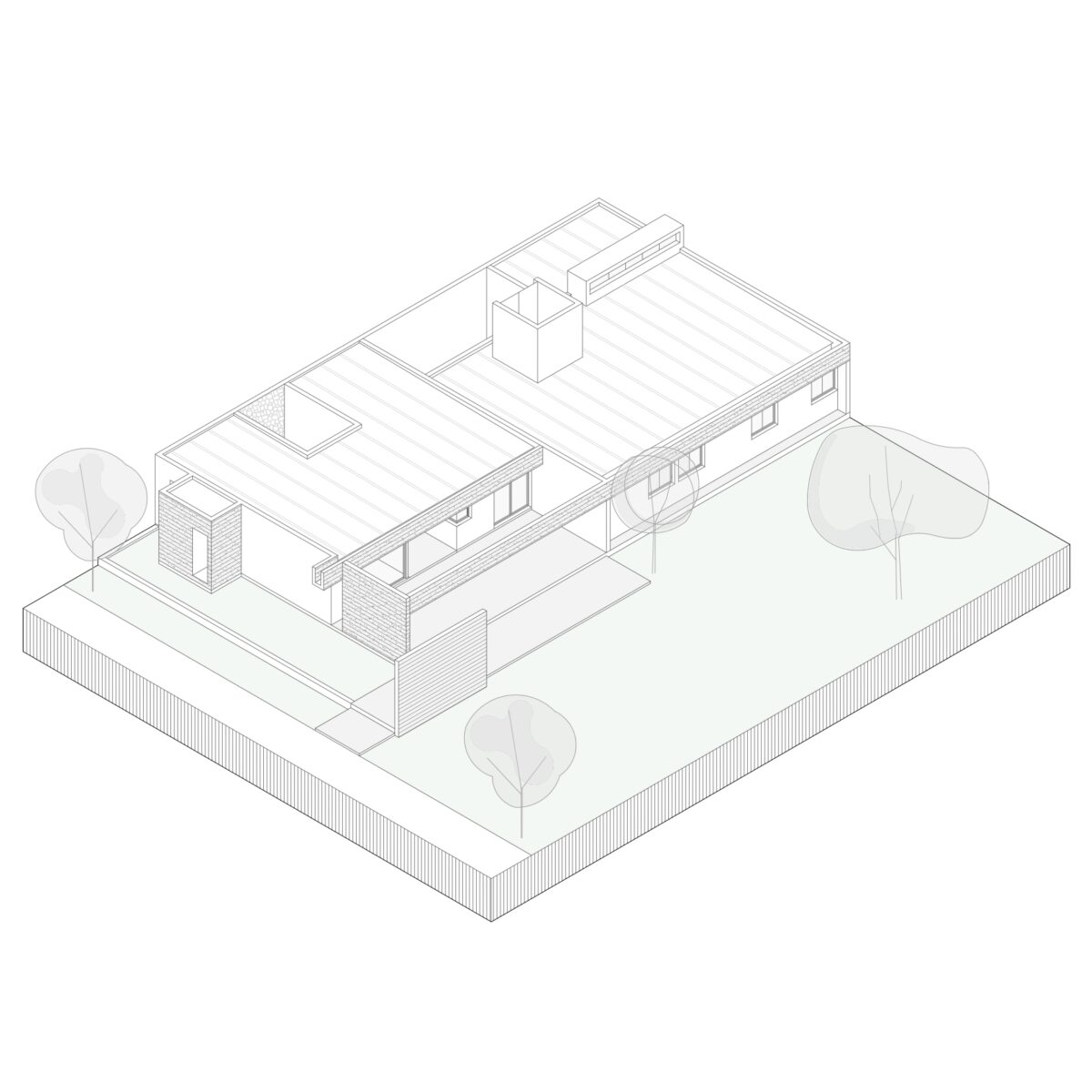 En una obsesiva búsqueda del sol la obra se desarrolla aprovechando el doble ancho del terreno orientando los cinco espacios de carácter principal hacia el norte mientras que los apoyos se ubican al sur. ​