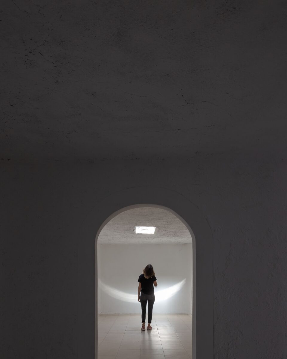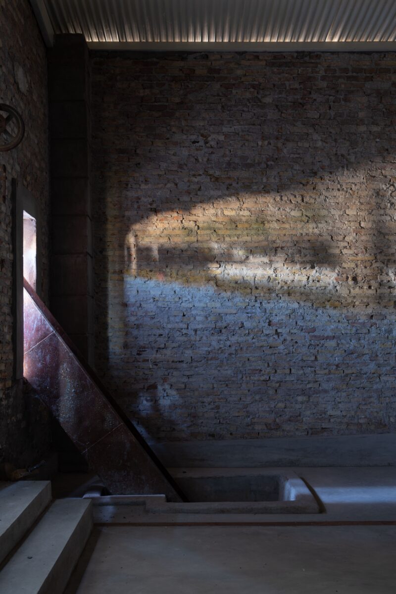 Se perforaron estratégicamente aberturas desde el pasillo hacia el interior de las piletas, invitando al visitante a adentrarse en un espacio que normalmente queda oculto. Las piletas aún conservan vestigios aromáticos del vino almacenado, lo que permite que el arte y el perfume se fusionen en una experiencia multisensorial. Además, la horadación superior de las piletas se transformó en un lucernario natural, generando una luz focal que se modifica con el transcurso de las horas, proporcionando un dinamismo espacial que interactúa con el arte y enriquece la experiencia del visitante.